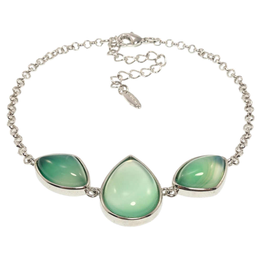 Браслет Xuping Родій Вставка три зелені камені довжина з дод. ланцюжком 19-24см х 2мм фото №1