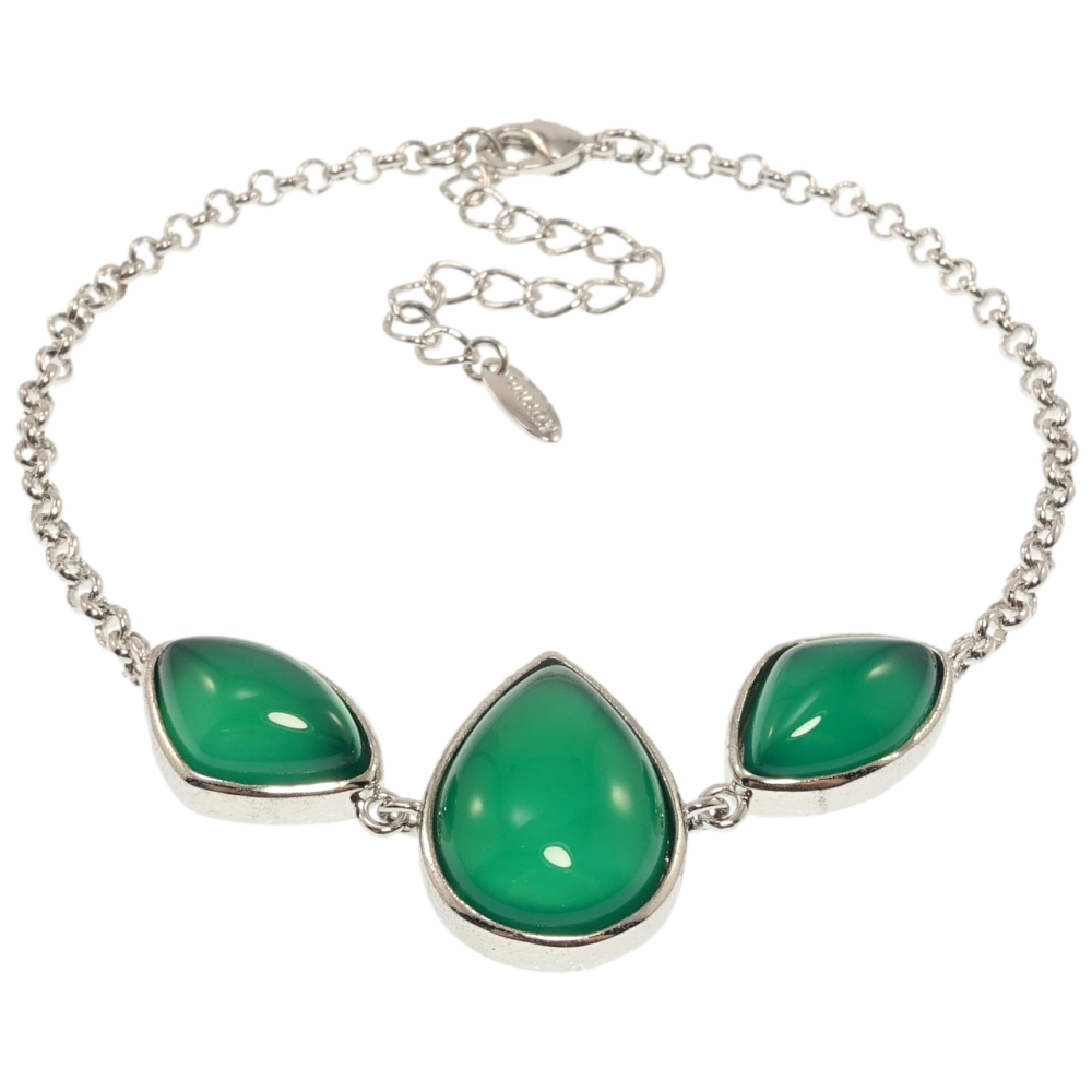 Браслет Xuping Родій Вставка три зелені камені довжина з дод. ланцюжком 19-24см х 2мм