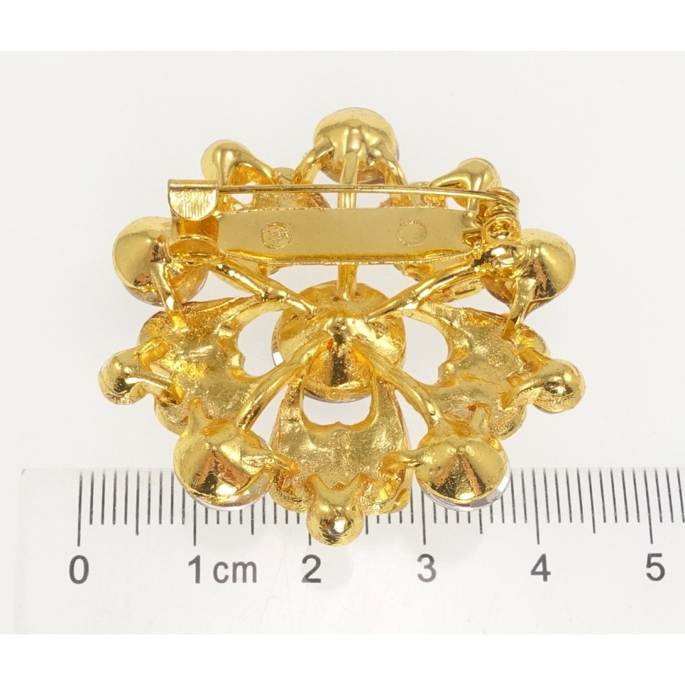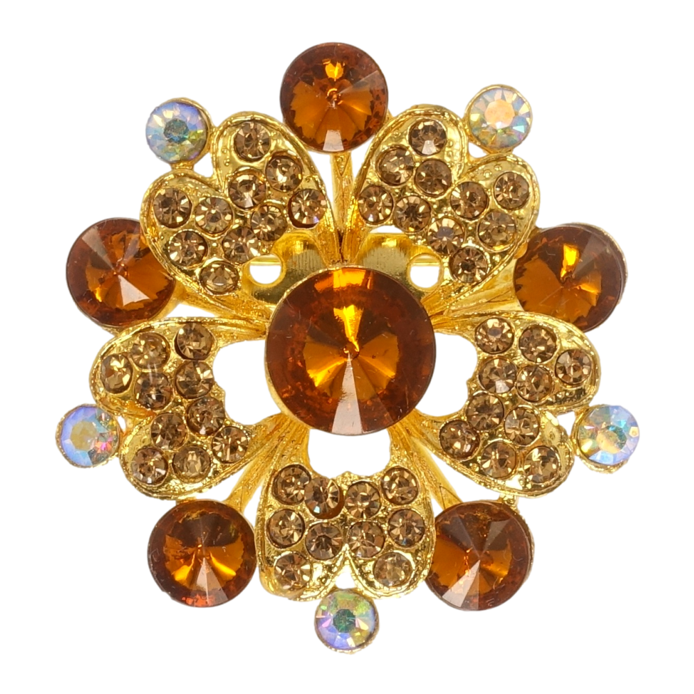 Брошка Квітка з коричневими стразами