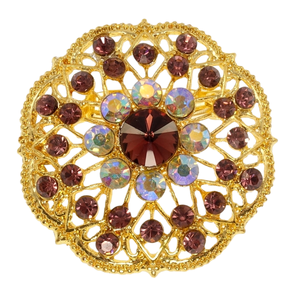 Брошка Квітка з бордовими стразами