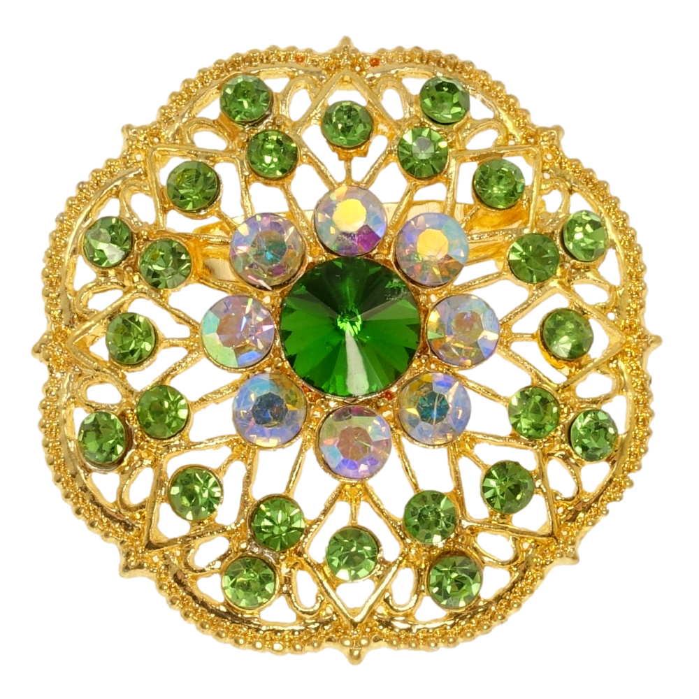 Брошка Квітка із зеленими стразами
