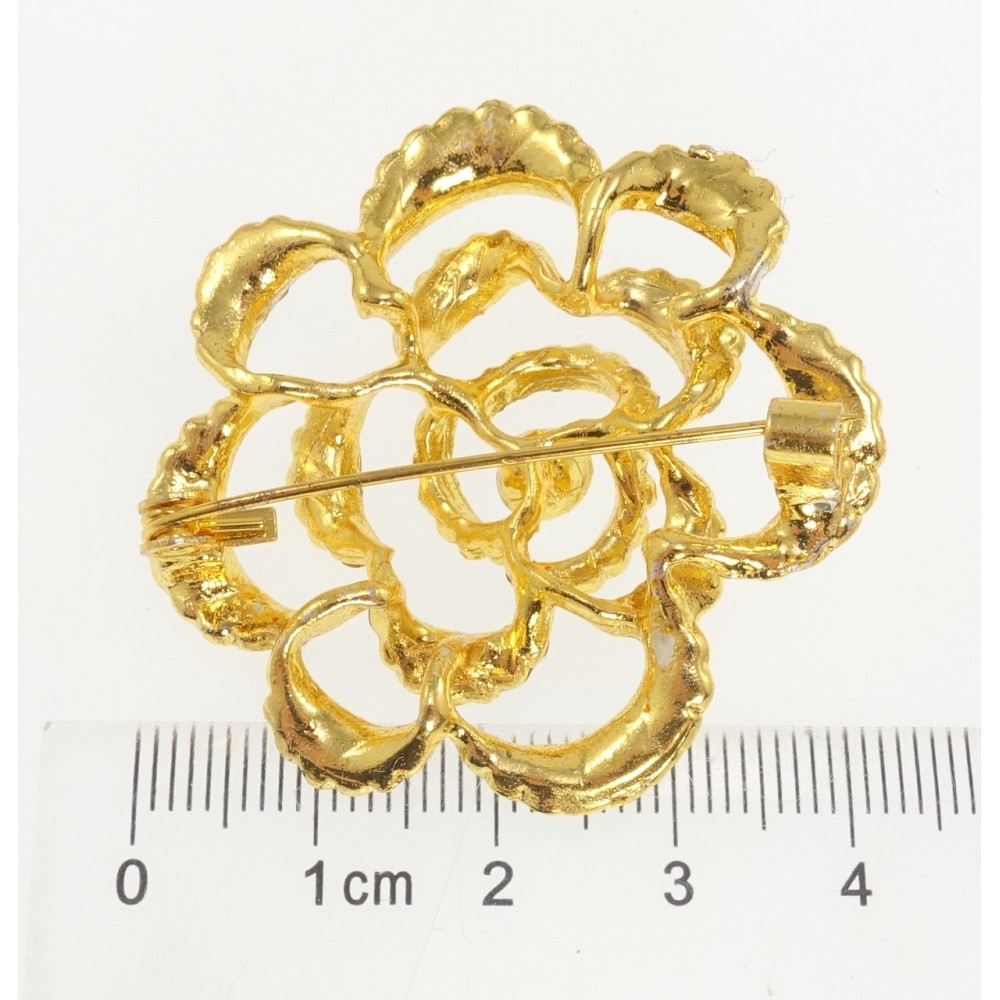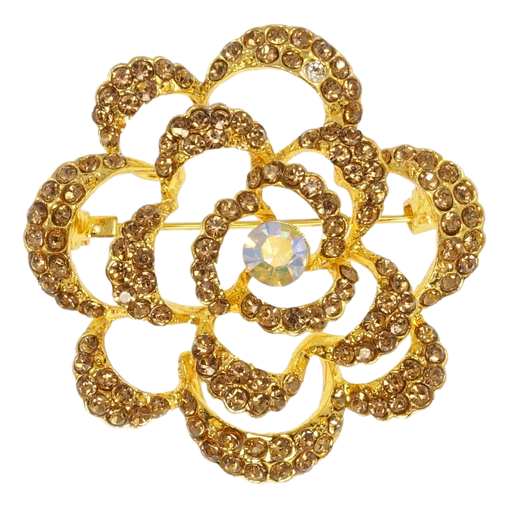 Брошка Квітка з коричневими стразами