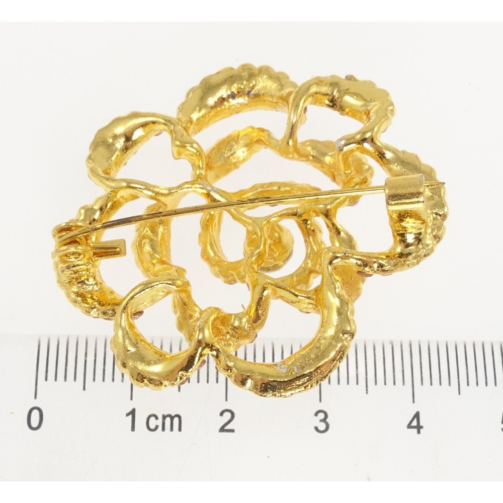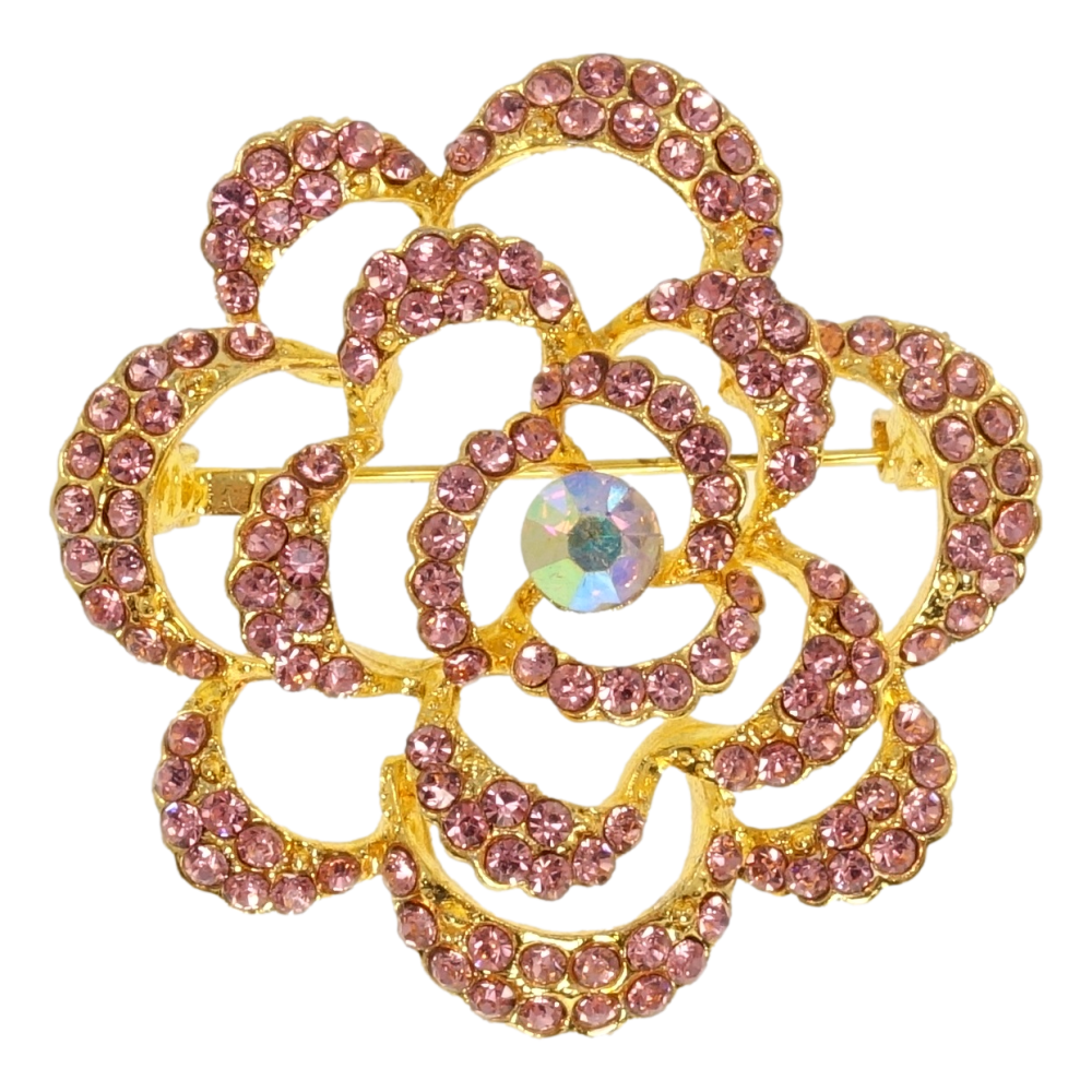 Брошка Квітка з рожевими стразами