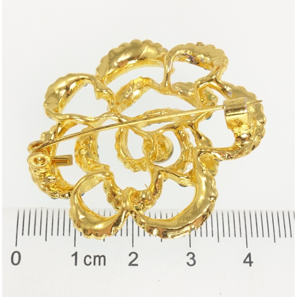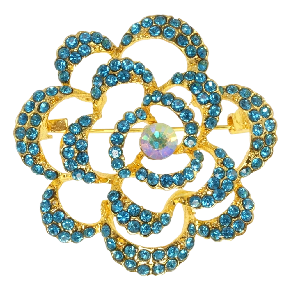 Брошка Квітка з блакитними стразами
