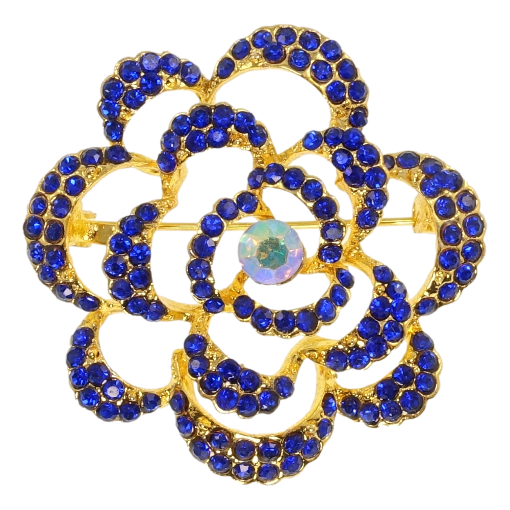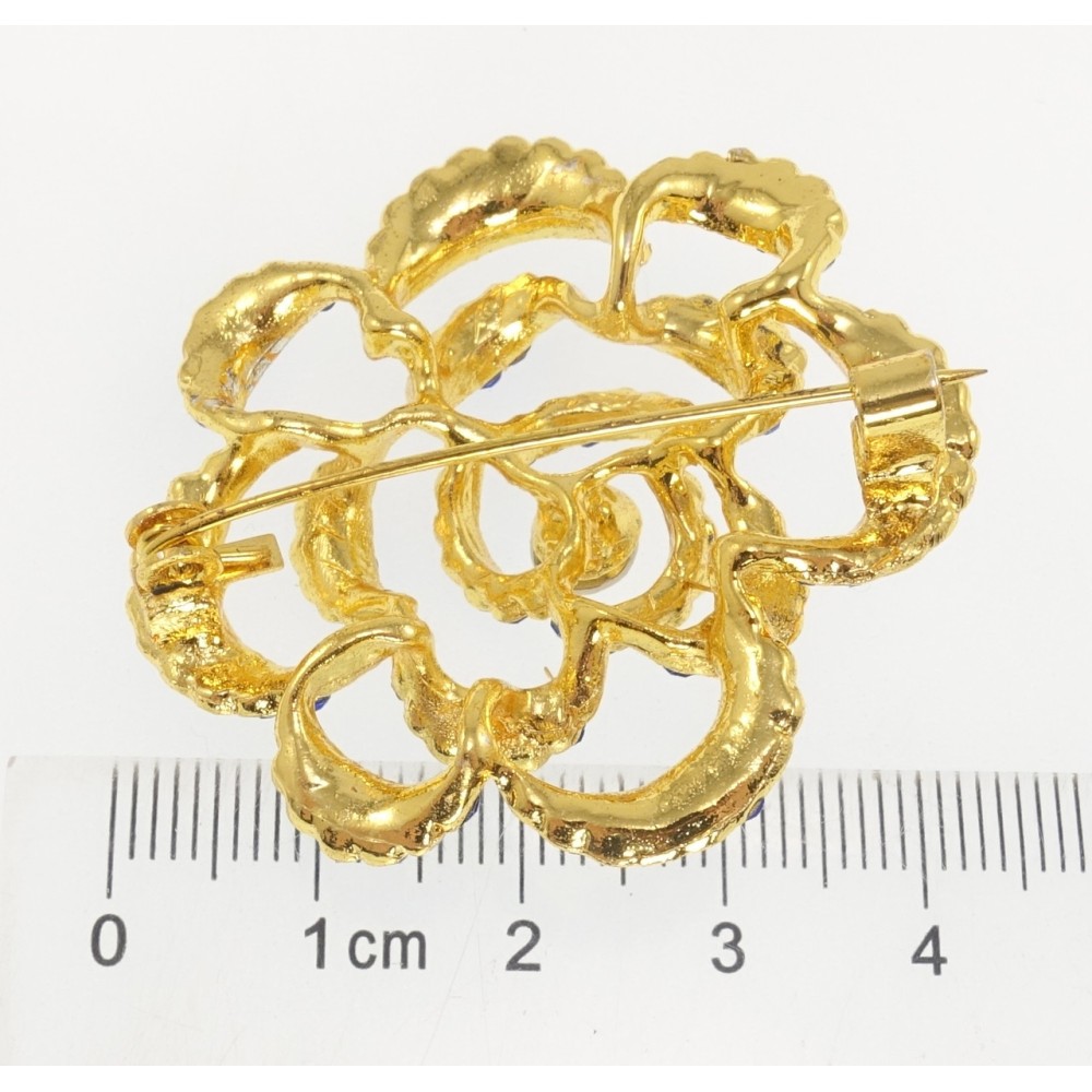 Брошка Квітка з синіми стразами