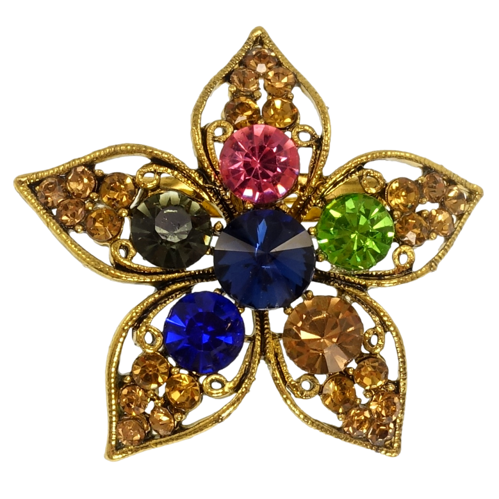 Брошка Квітка з різнокольоровими кристалами