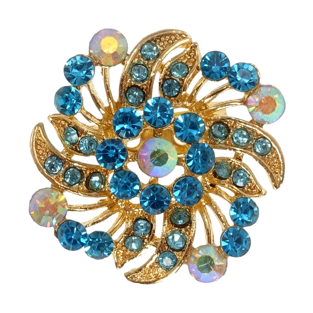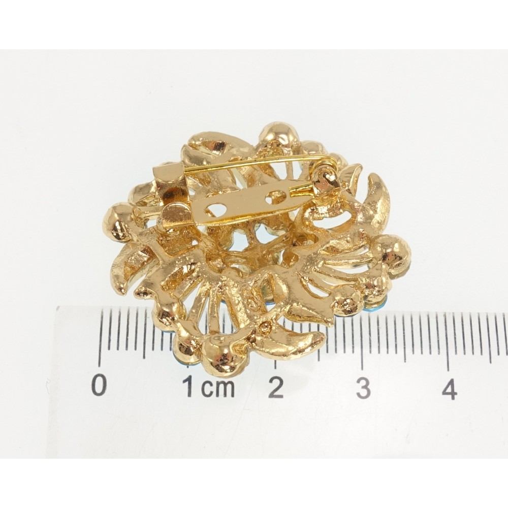 Брошка Квітка з бірюзовими стразами