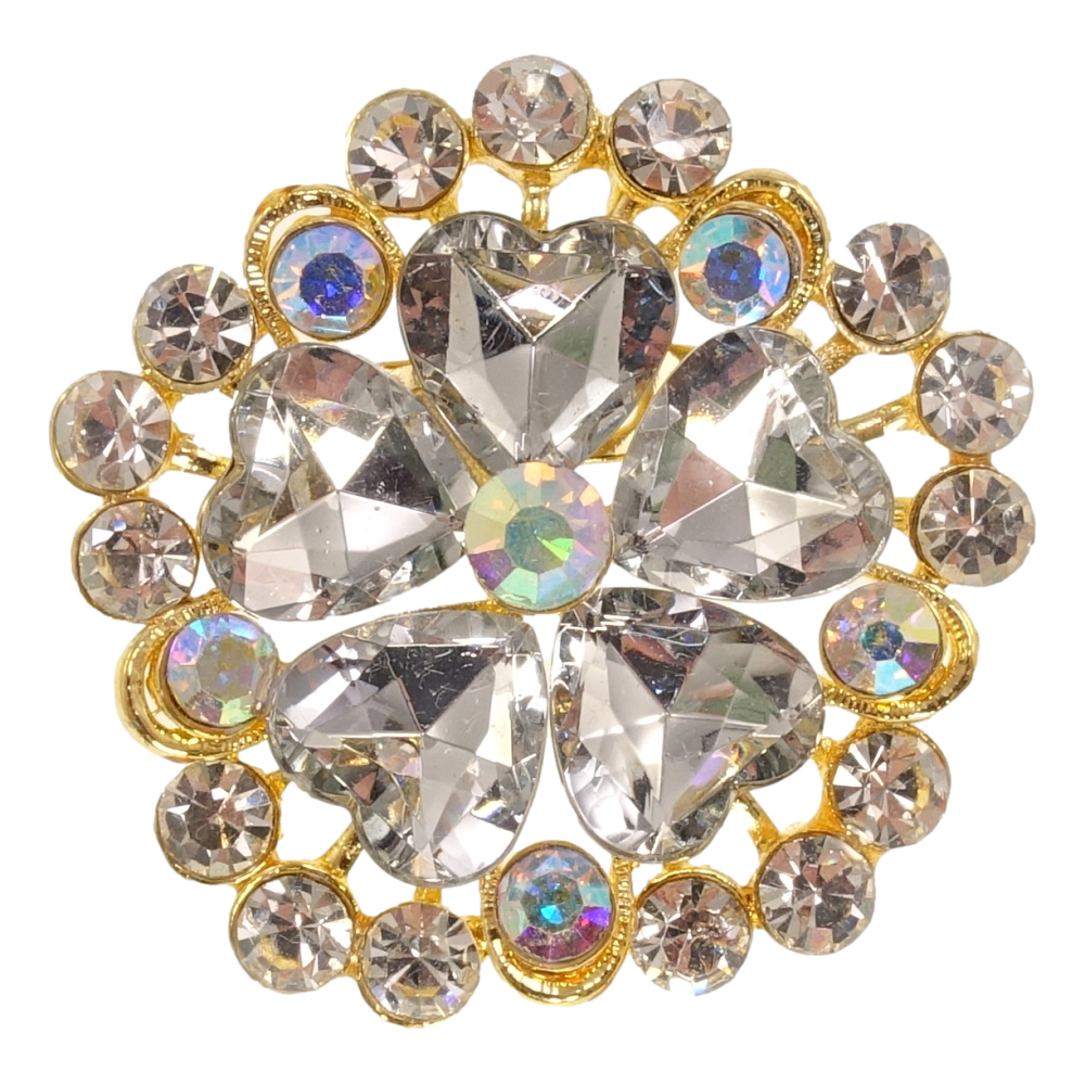 Брошка Квітка з білими кристалами