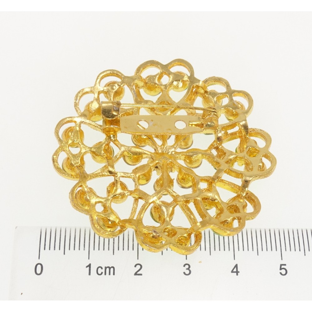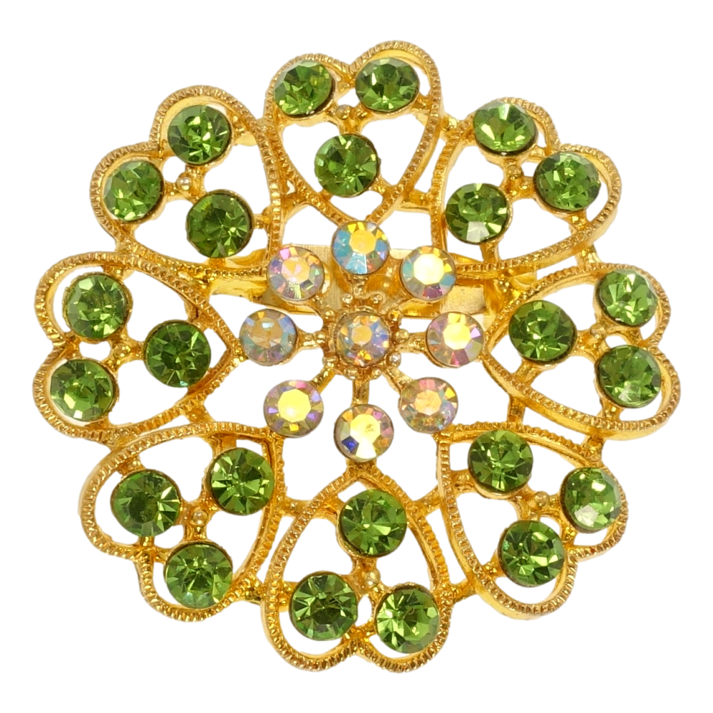 Брошка Квітка з салатовими стразами
