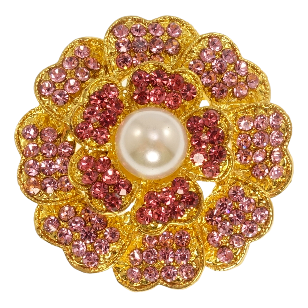 Брошка Квіточка з малиновими стразами та перлами