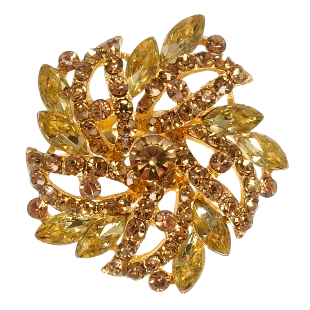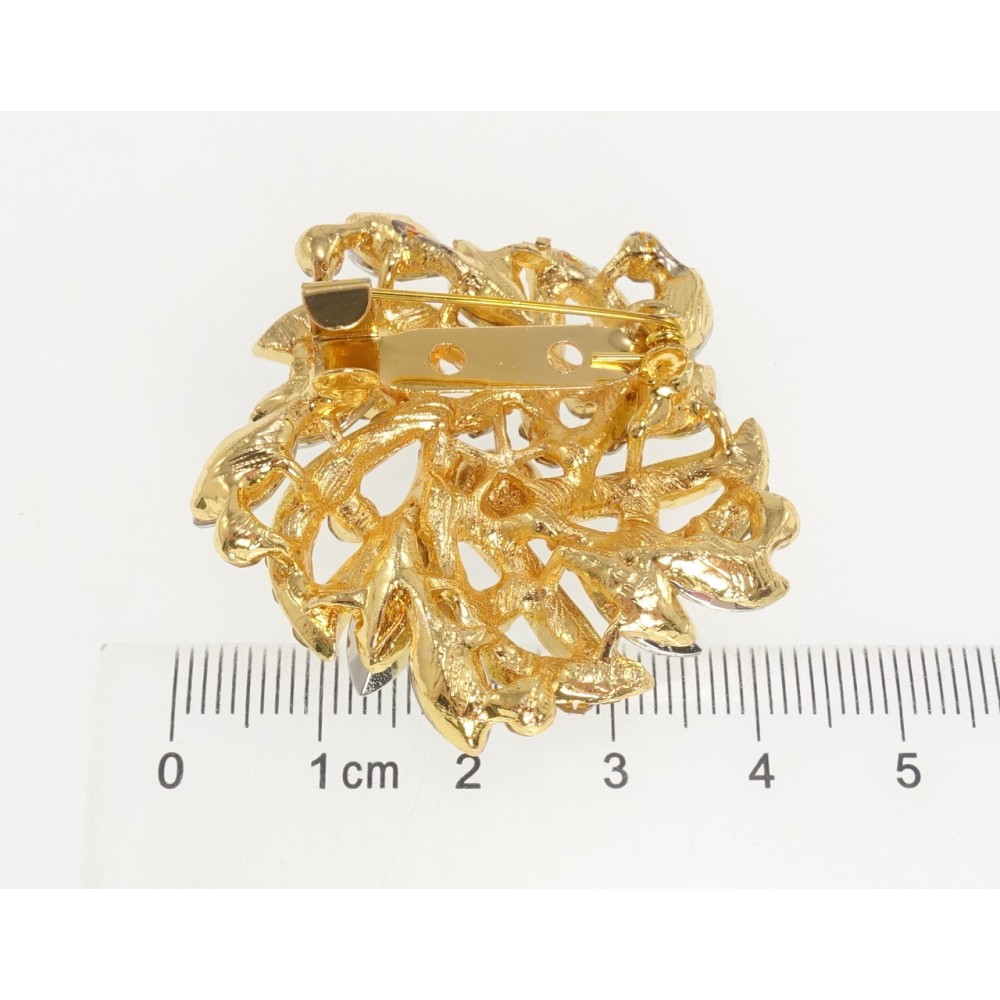 Брошка Квітка з коричневими стразами
