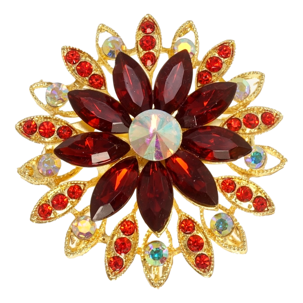 Брошка Квітка з червоними кристалами