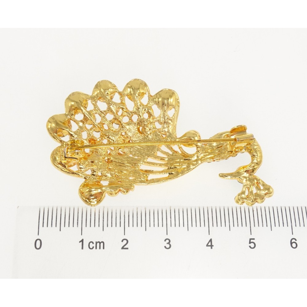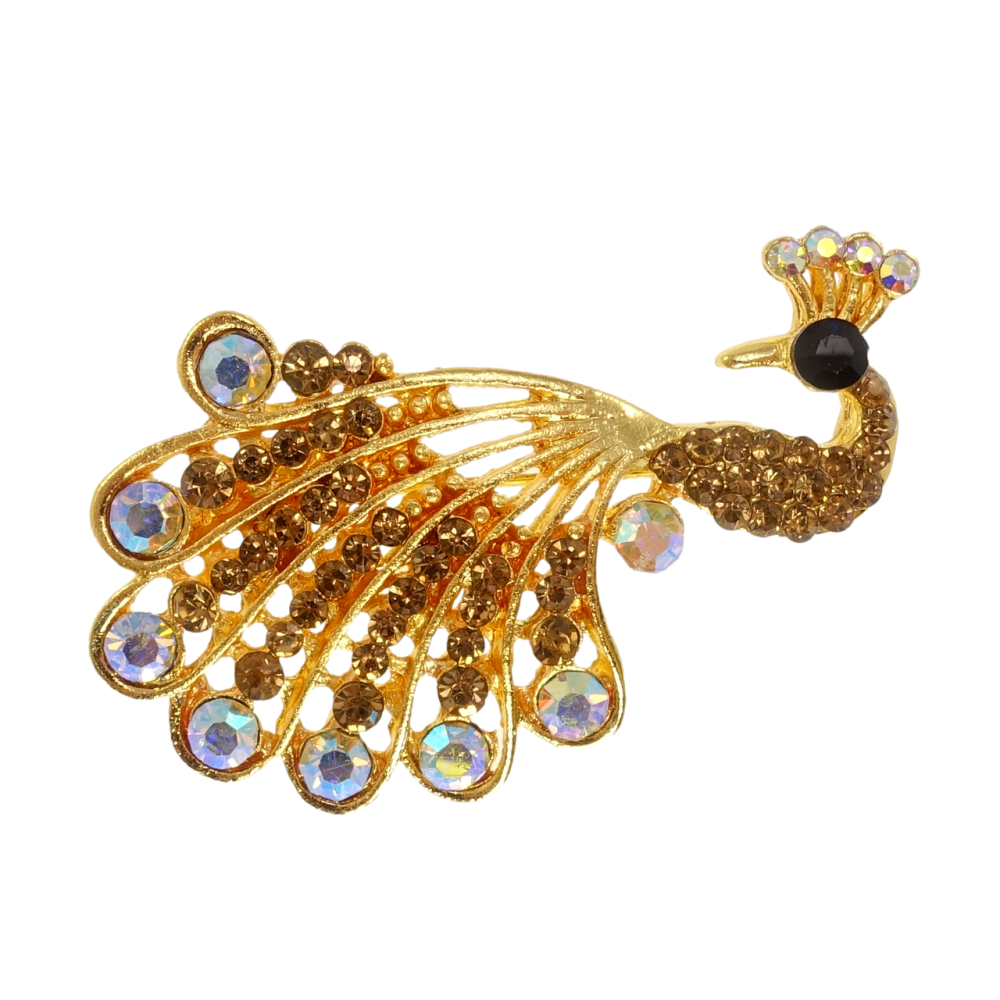 Брошка Павич з коричневими стразами