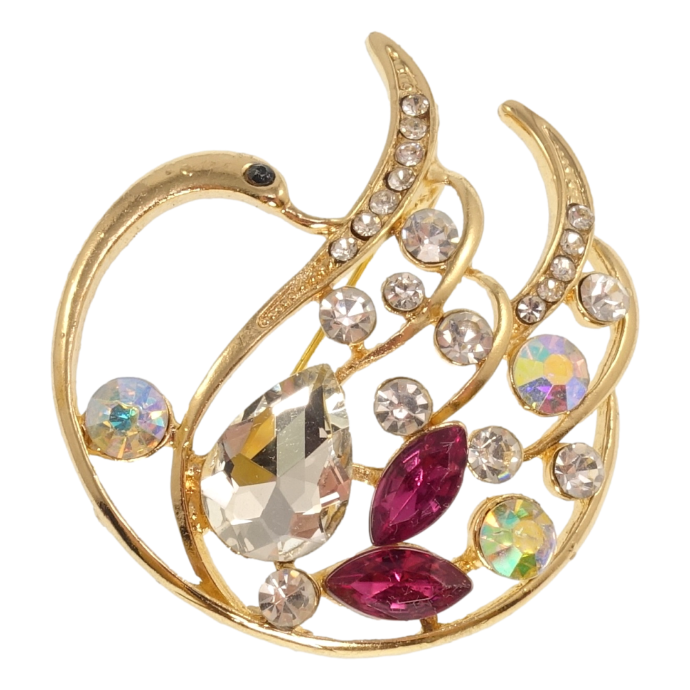 Брошка Лебідь з малиновими кристалами