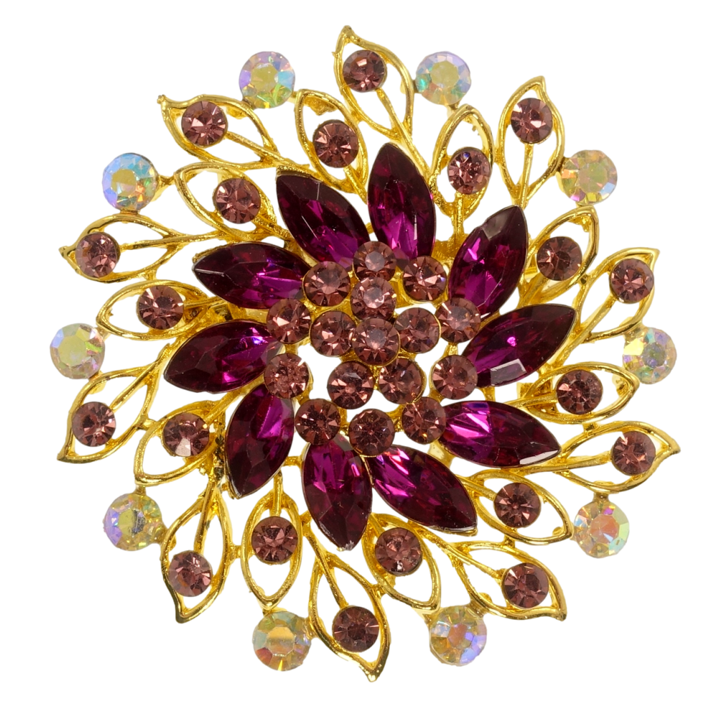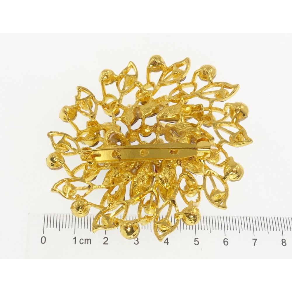 Брошка Квітка з бордовими стразами
