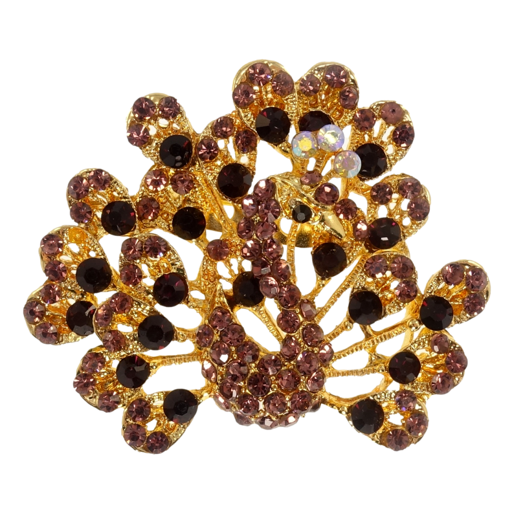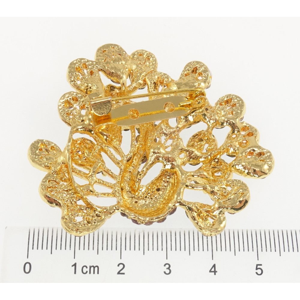 Брошка Павич з бордовими стразами