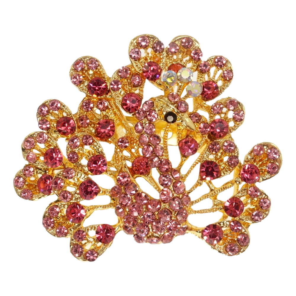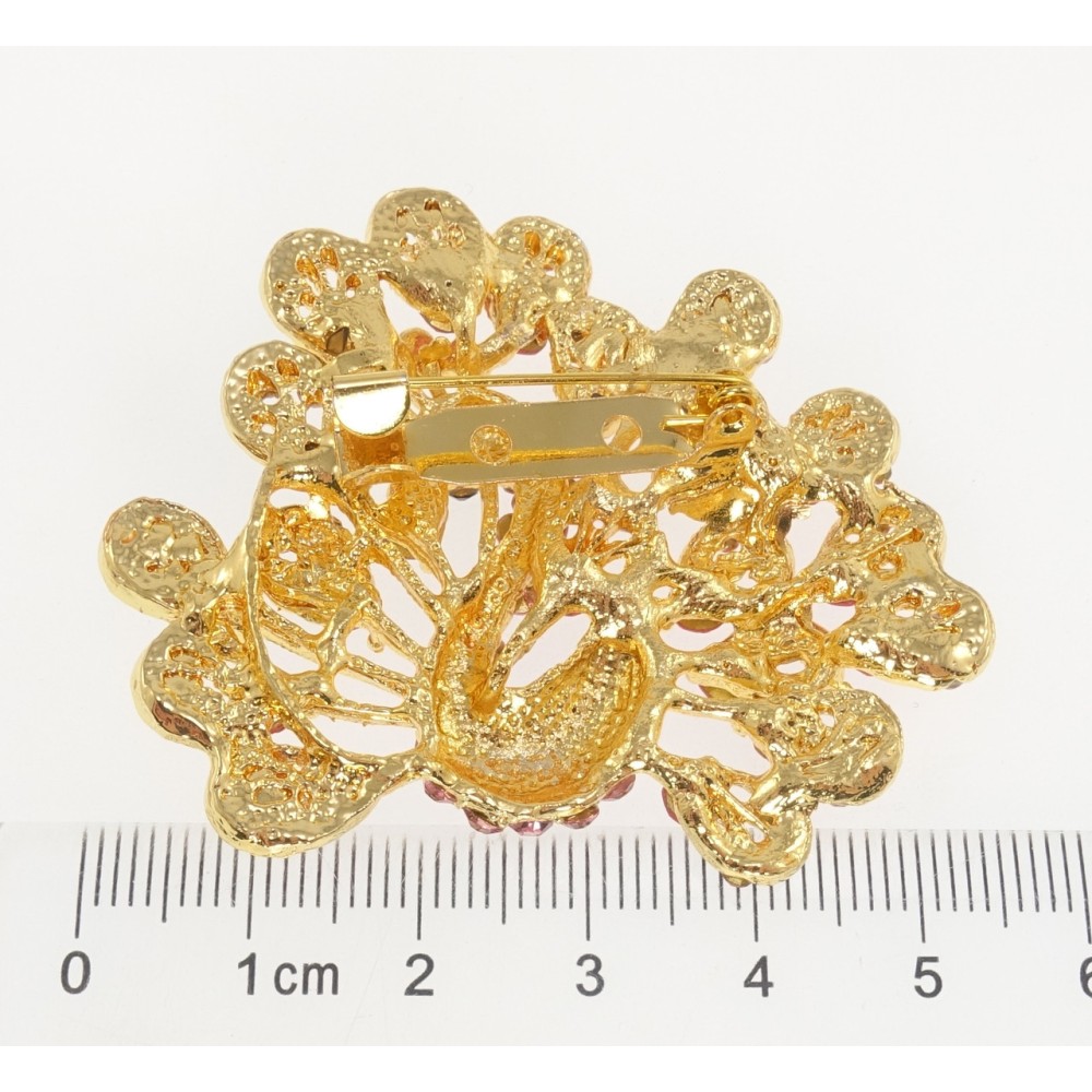 Брошка Павич з рожевими стразами
