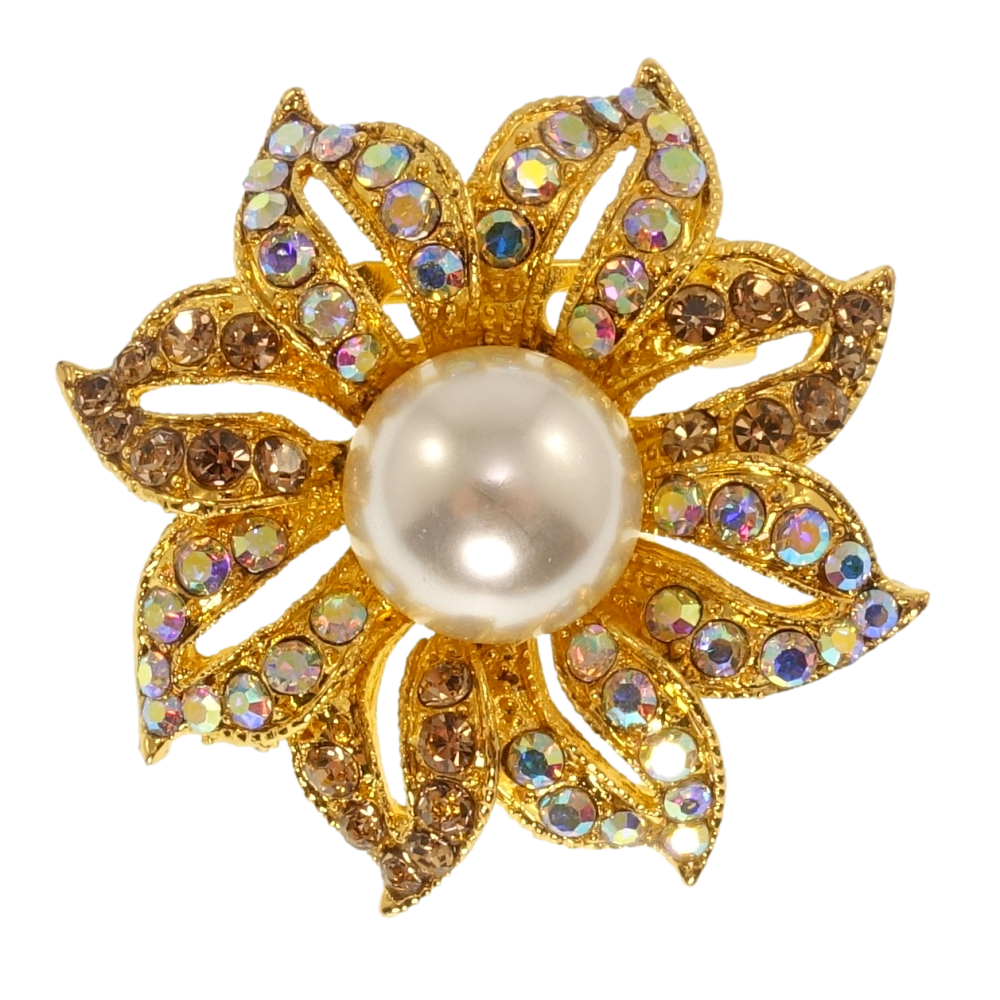 Брошка Квітка з різнокольоровими стразами та перлами