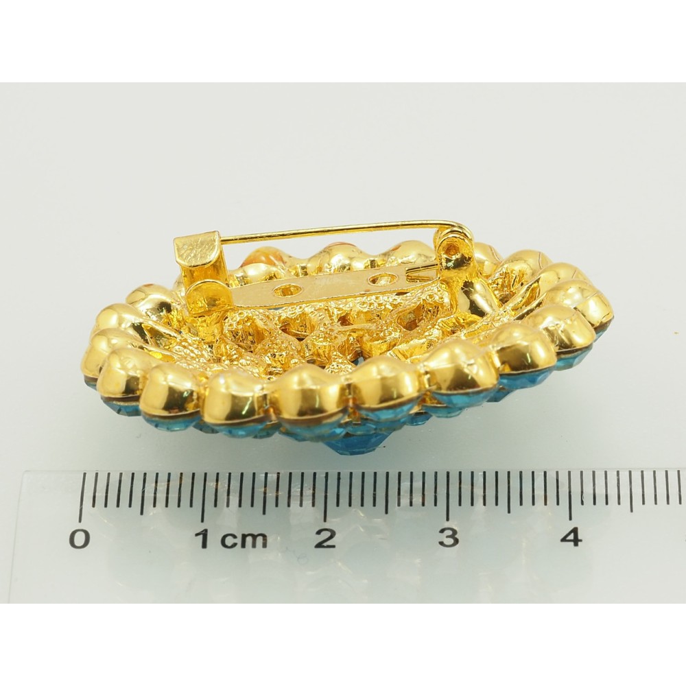 Брошка Квітка з бірюзових страз