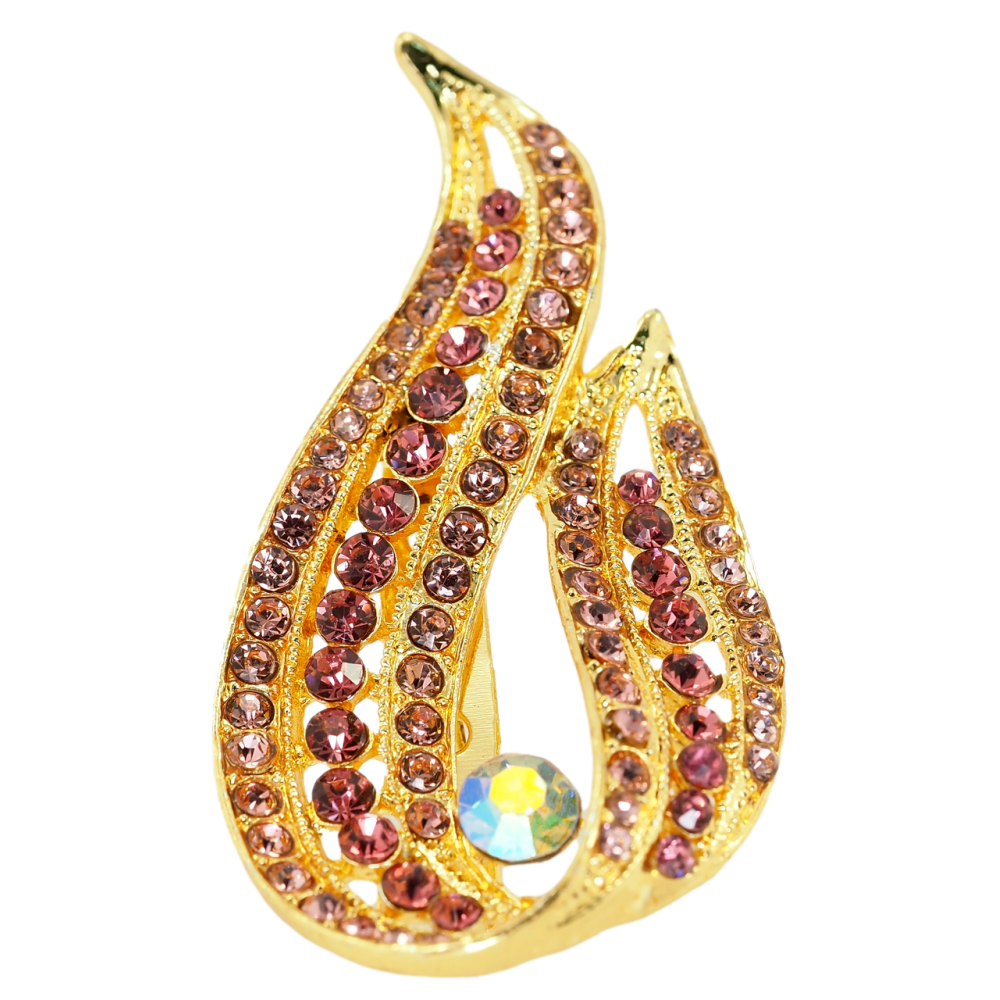 Брошка Вогник з рожевими стразами