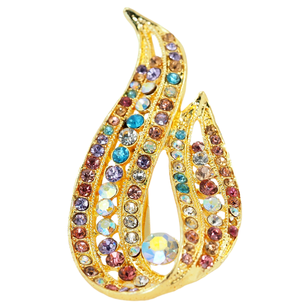 Брошка Вогник з різнокольоровими стразами