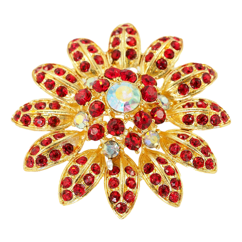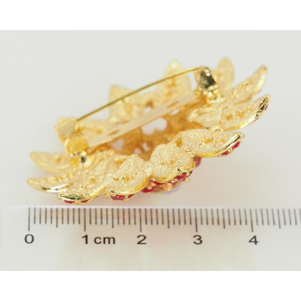 Брошка Квітка з червоними стразами