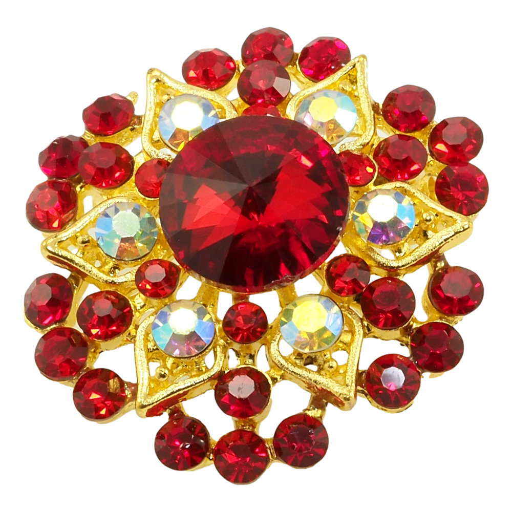 Брошка Квіточка з червоними стразами