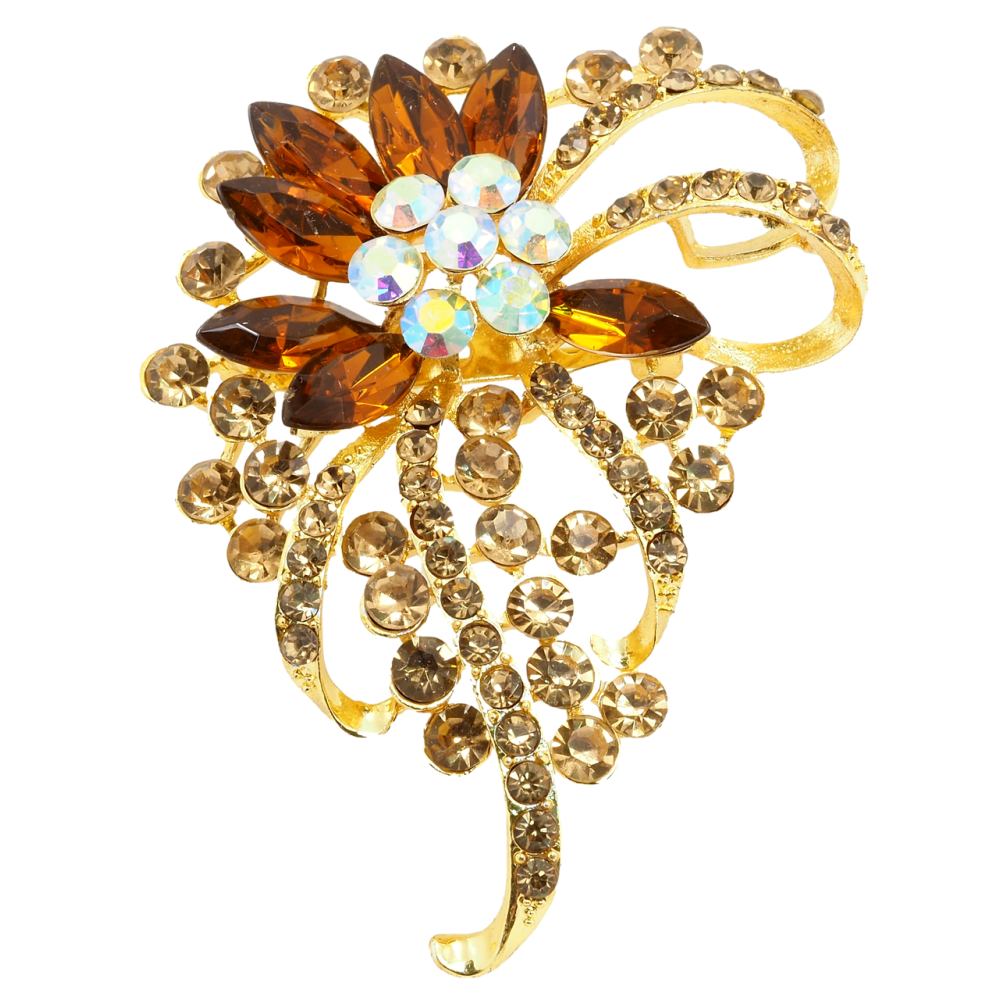 Брошка Квіткова композиція з коричневими стразами