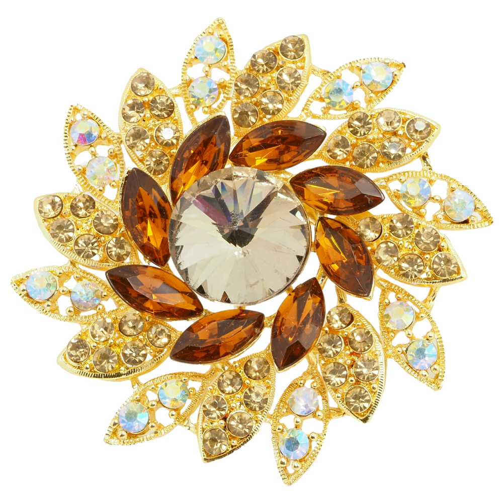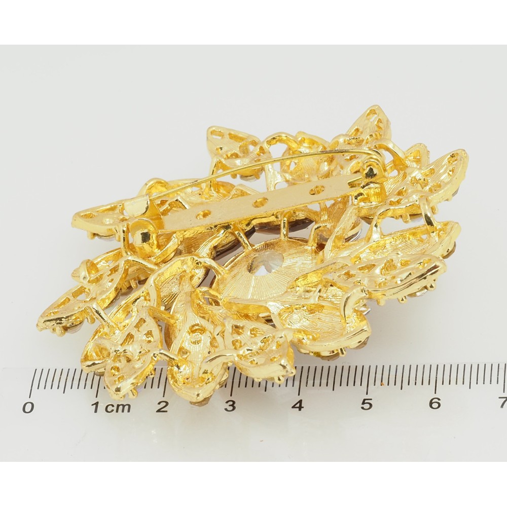 Брошка Квітка з коричневими стразами