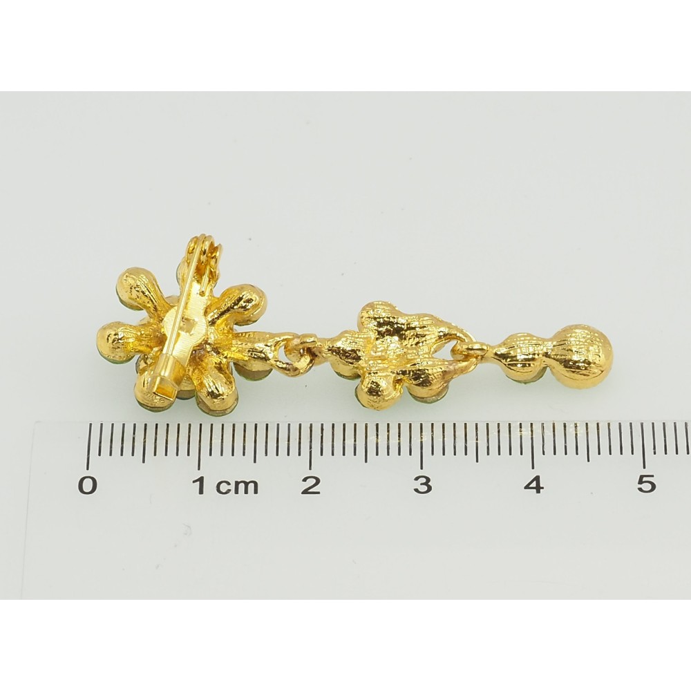 Брошка Квіткова підвіска із зелених страз