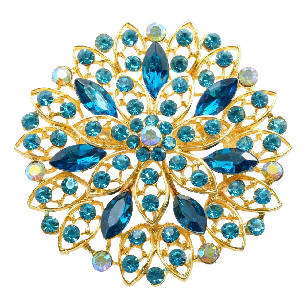 Брошка Квітка з блакитними стразами
