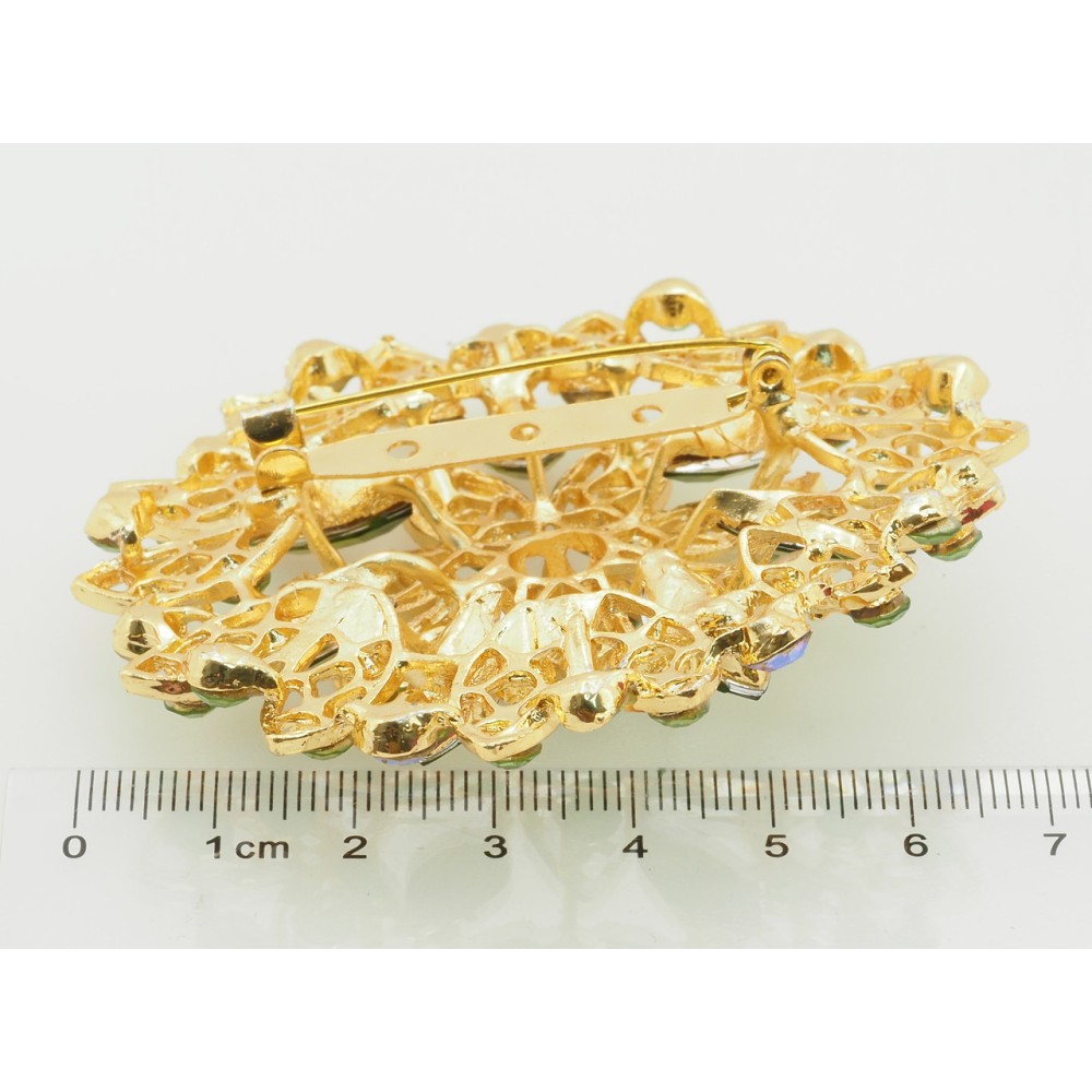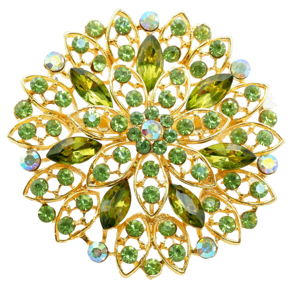 Брошка Квітка із зеленими стразами
