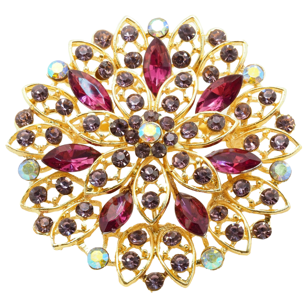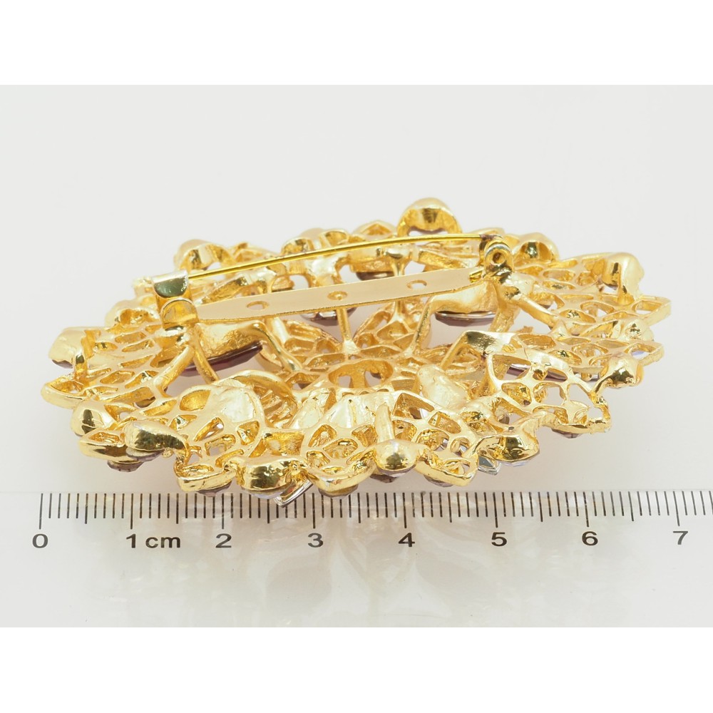 Брошка Квітка з бордовими стразами