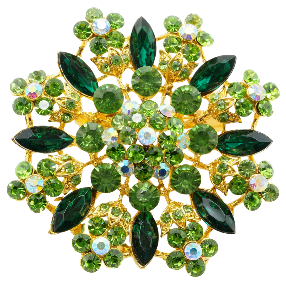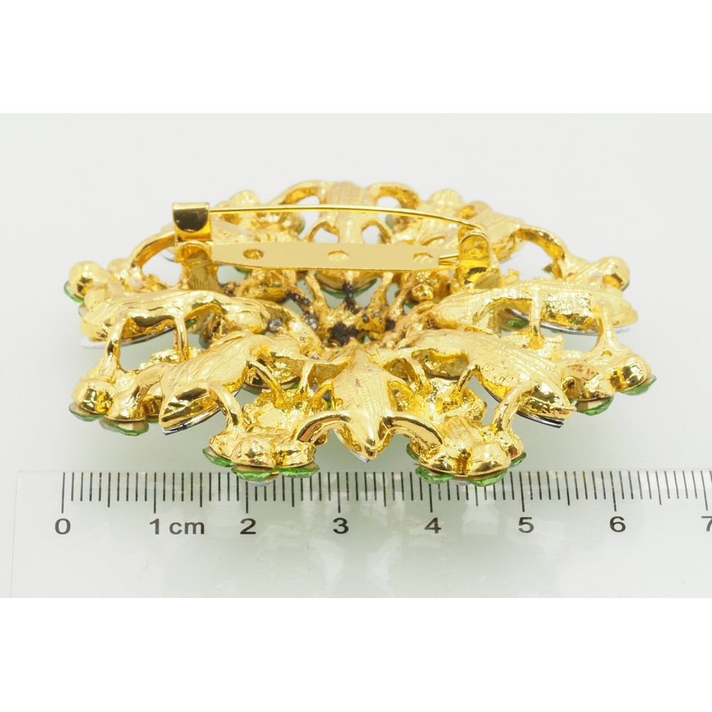 Брошка Квітка із зеленими стразами