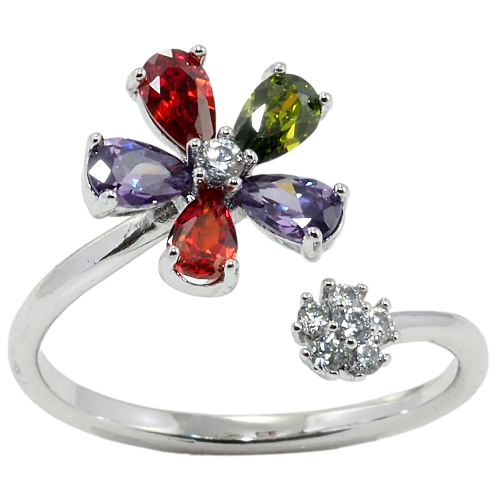 Каблучка Xuping Родій Квіточки з різнокольоровими фіанітами