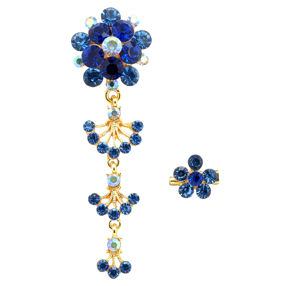Брошка Дві квіткові брошки з синіми стразами
