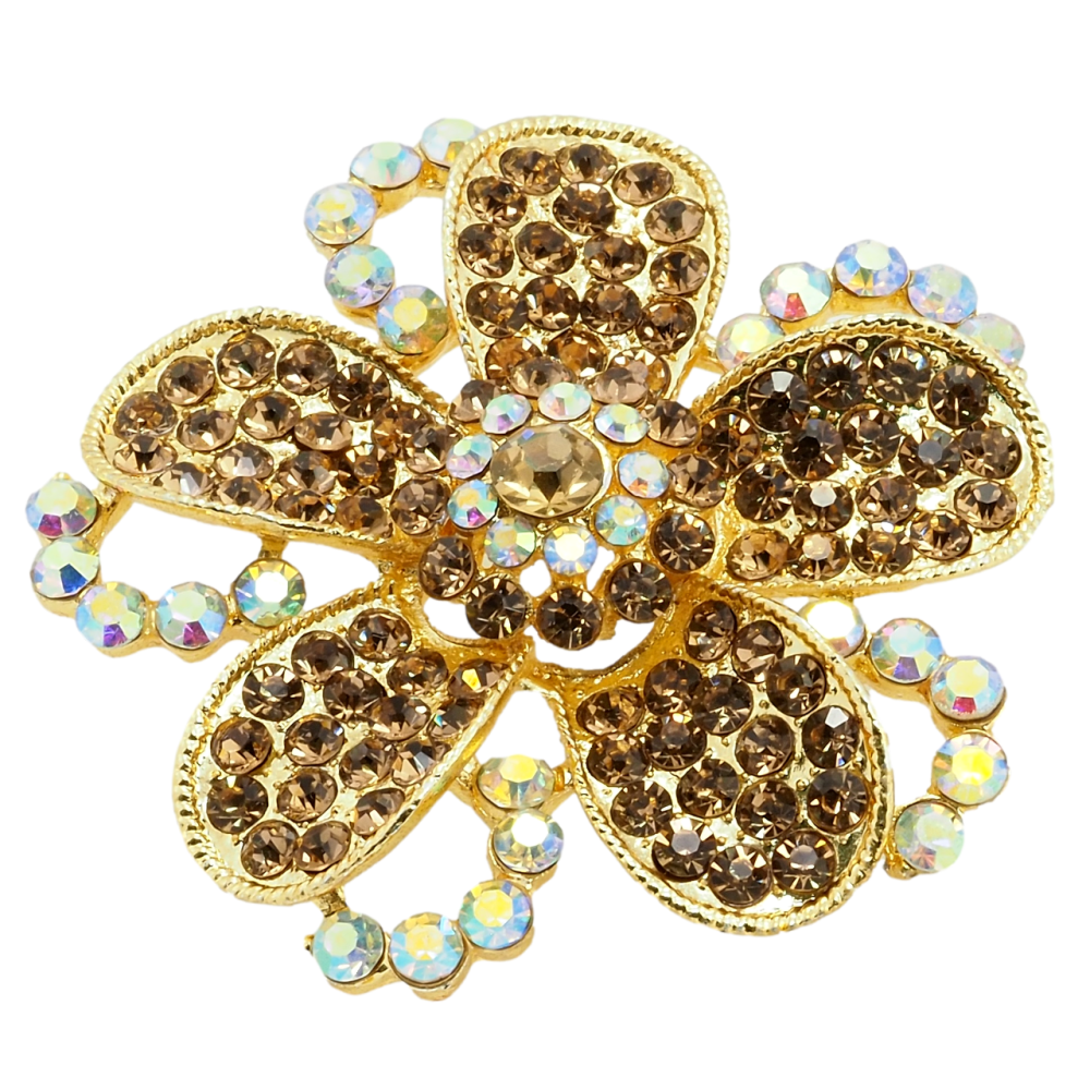 Брошка Квітка із золотистими стразами