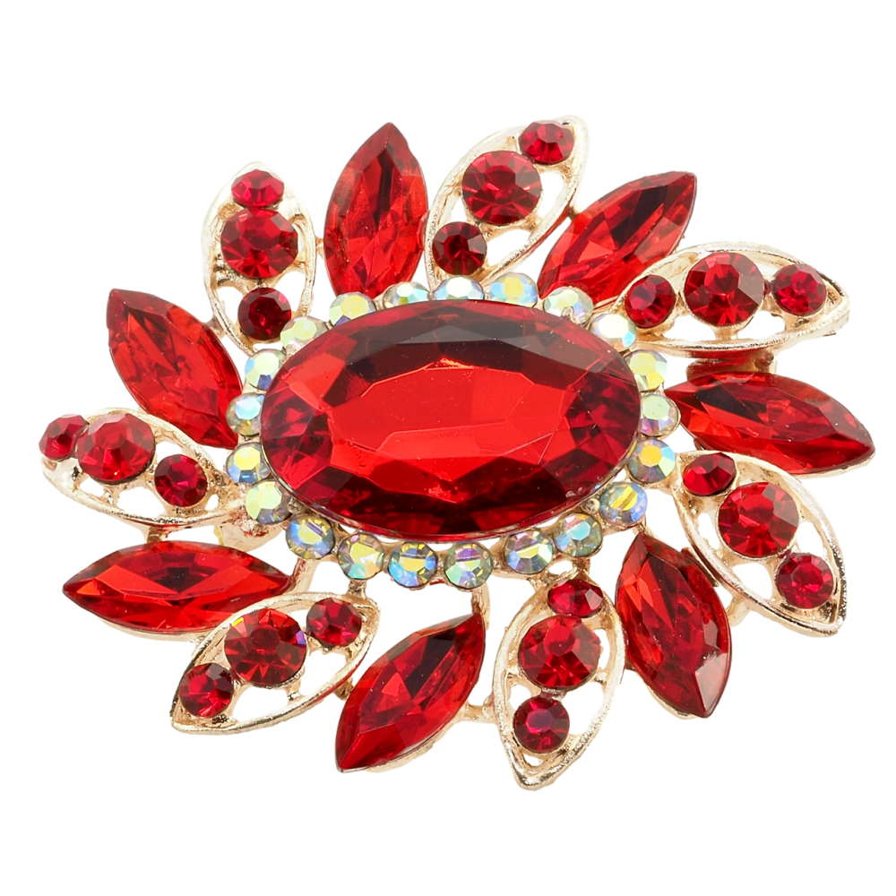 Брошка Квітка з червоними стразами
