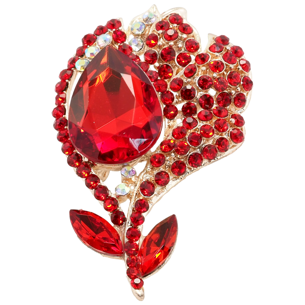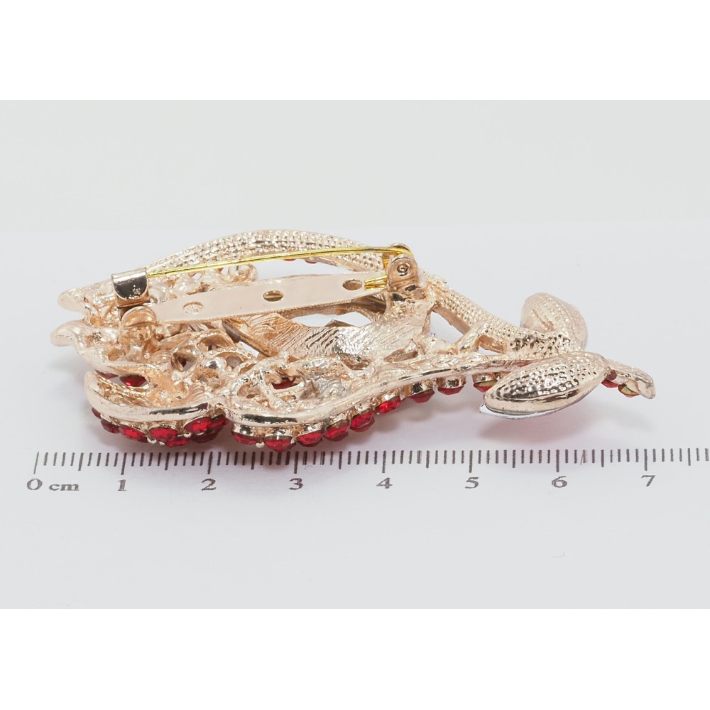 Брошка Квітка з червоними стразами