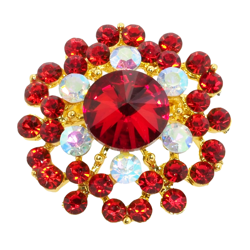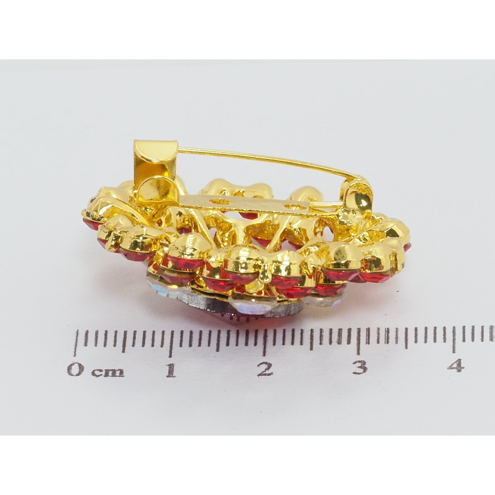 Брошка Квітка з червоними стразами