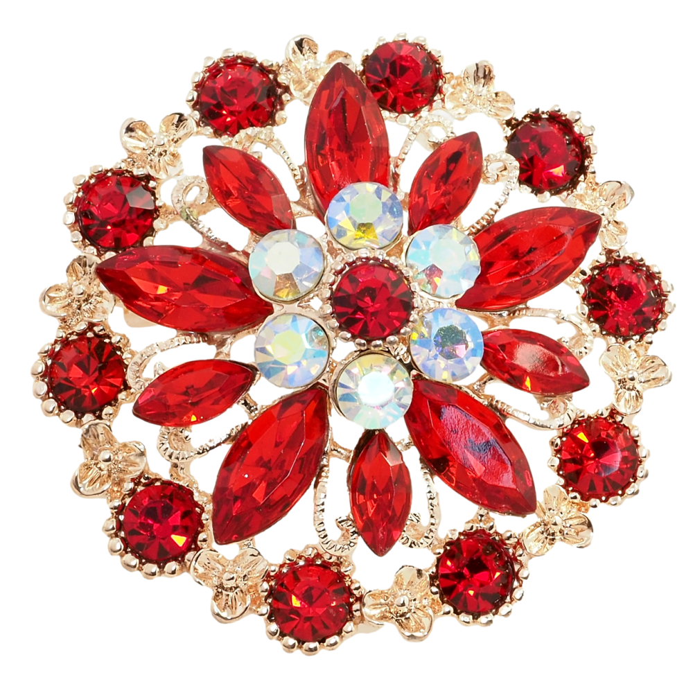 Брошка Квітка з червоними стразами
