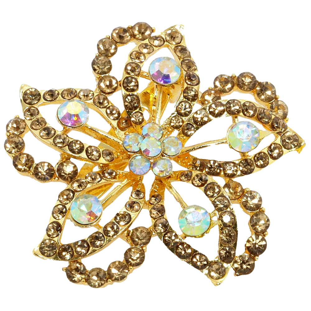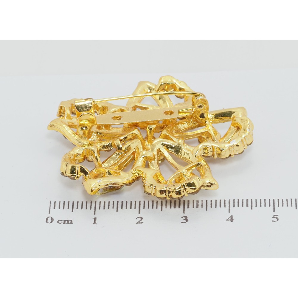 Брошка Квітка із золотистими стразами