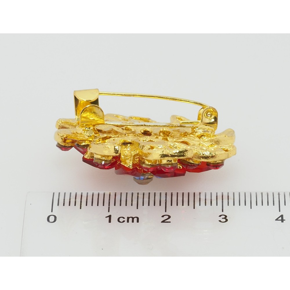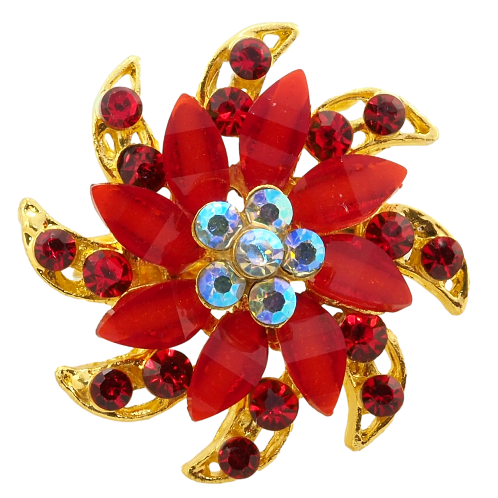 Брошка Квітка з червоними стразами