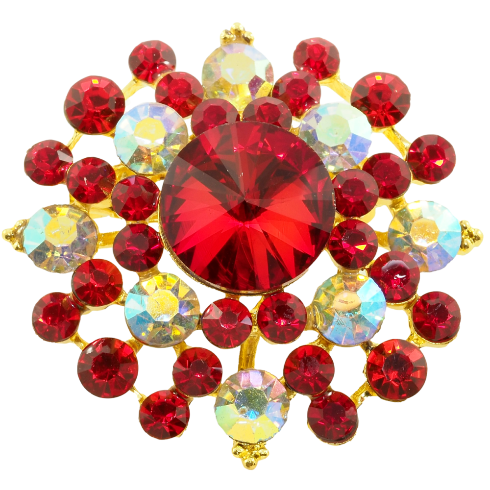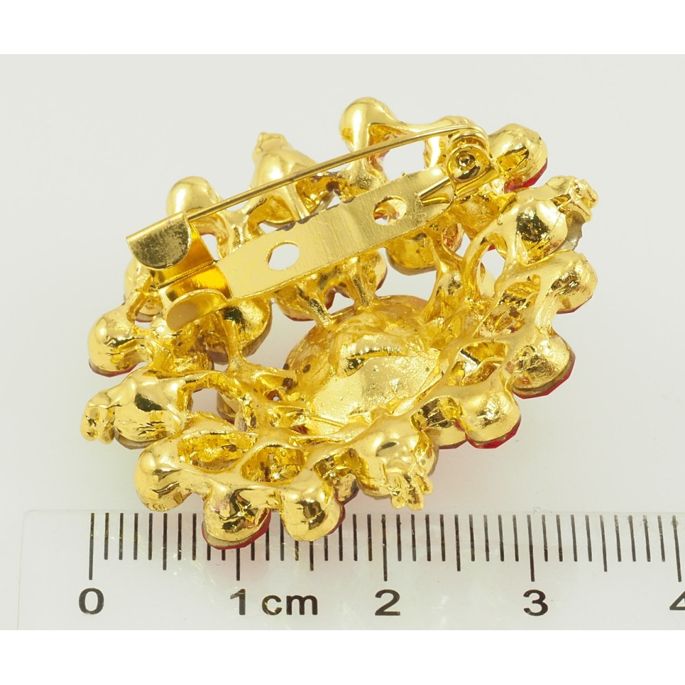 Брошка Квітка з червоними стразами