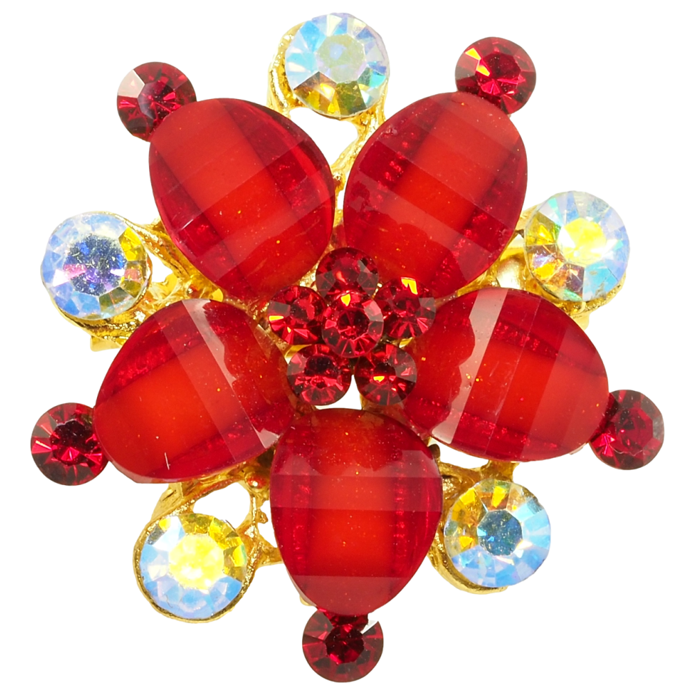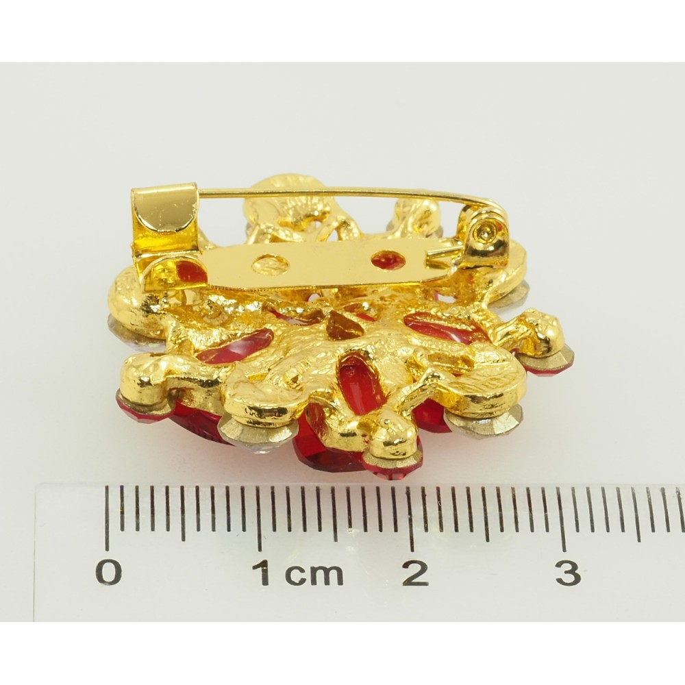 Брошка Квітка з червоними стразами