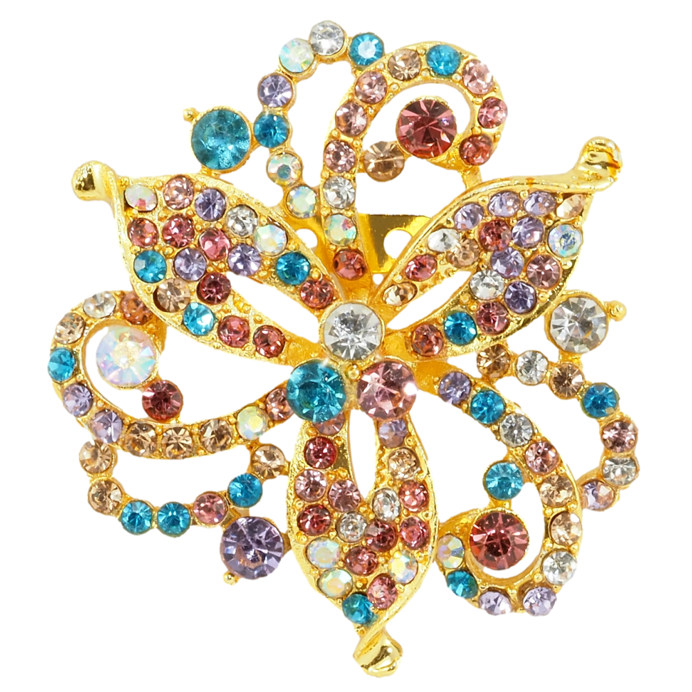 Брошка Декоративна квітка з різнокольоровими стразами