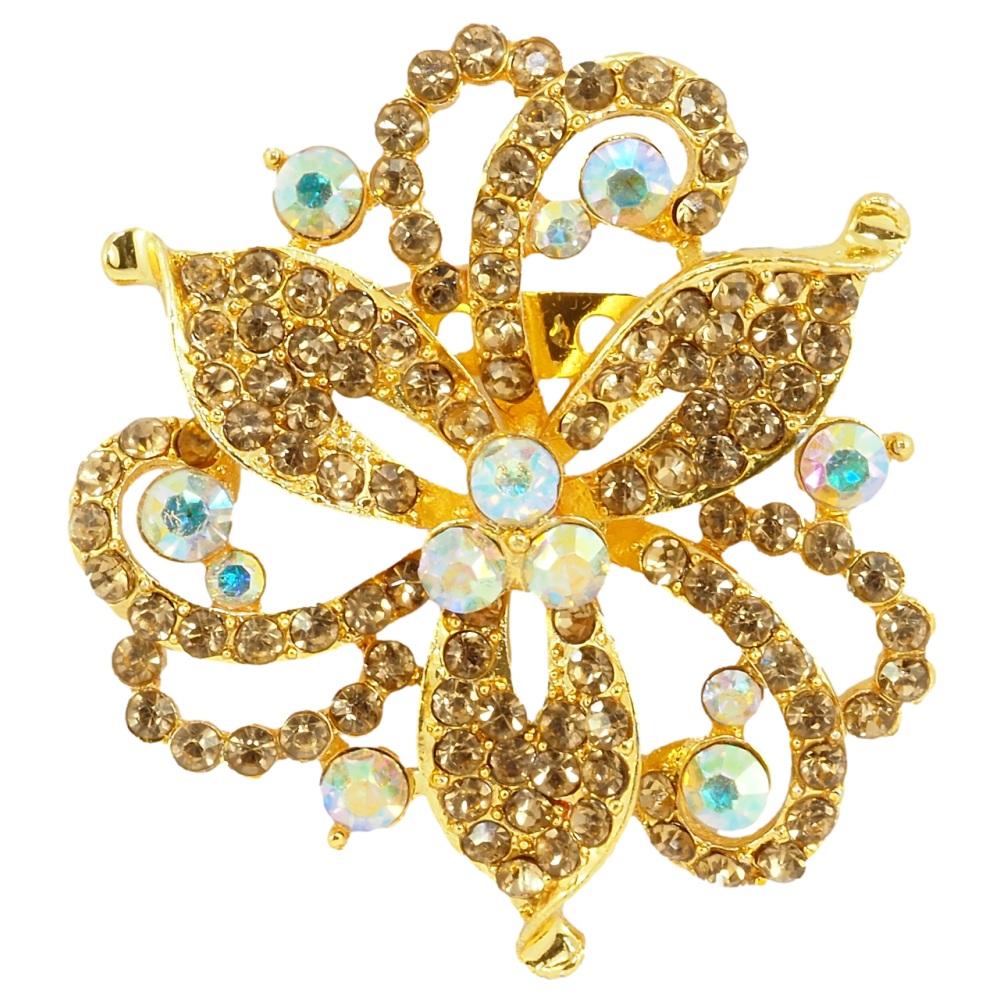 Брошка Декоративна квітка із золотистими стразами