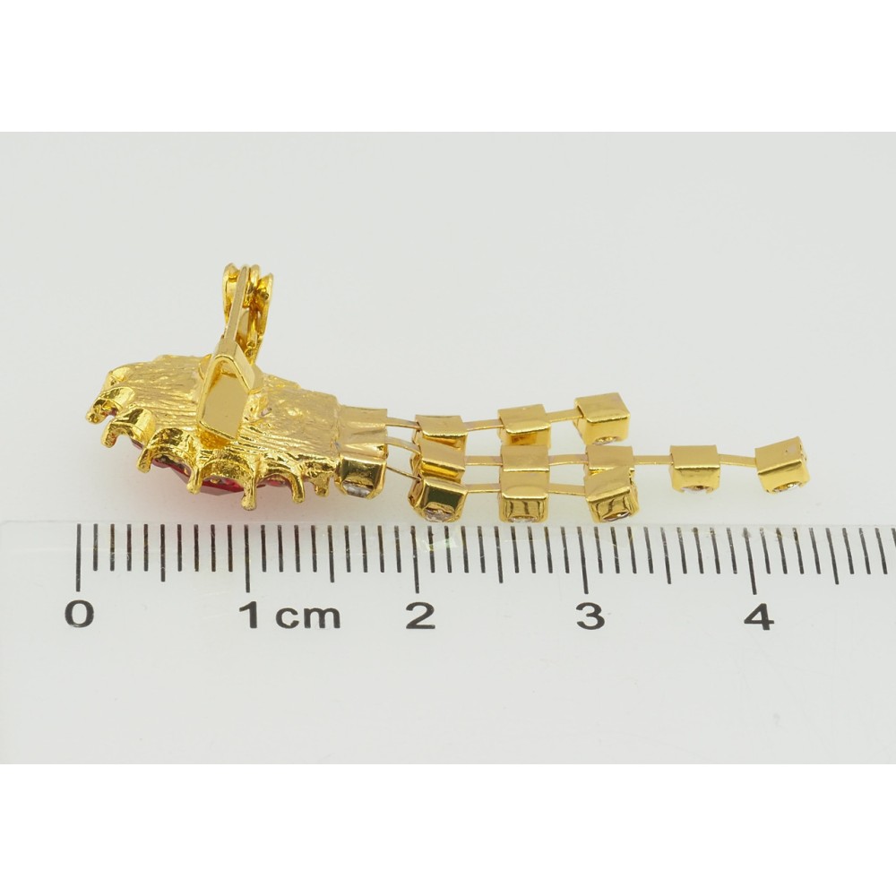 Брошка Квітка з червоними стразами