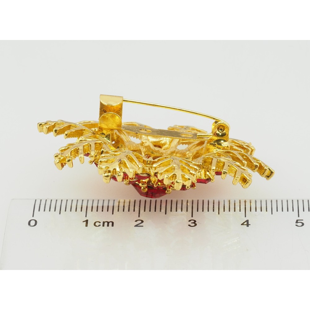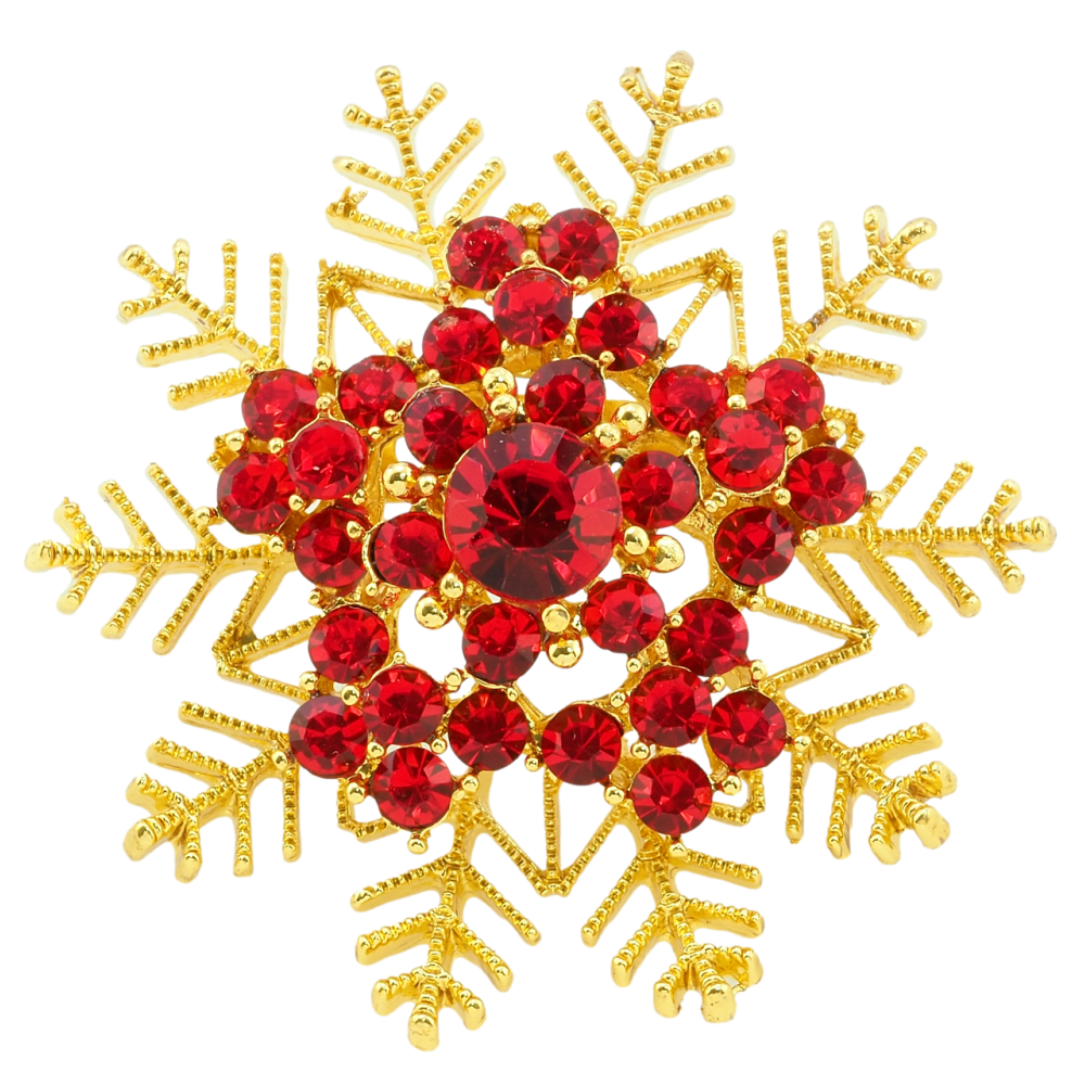 Брошка Сніжинка з червоними стразами