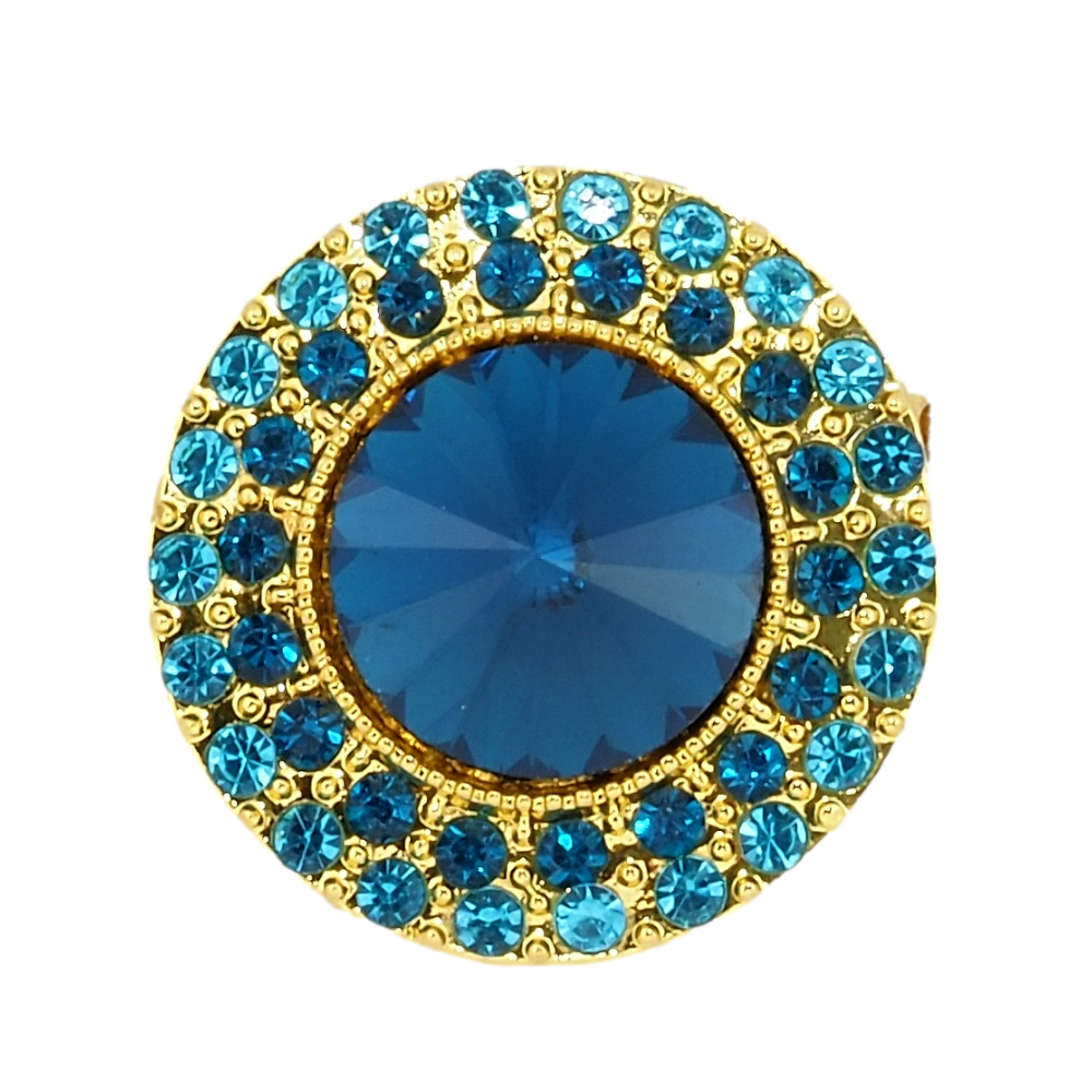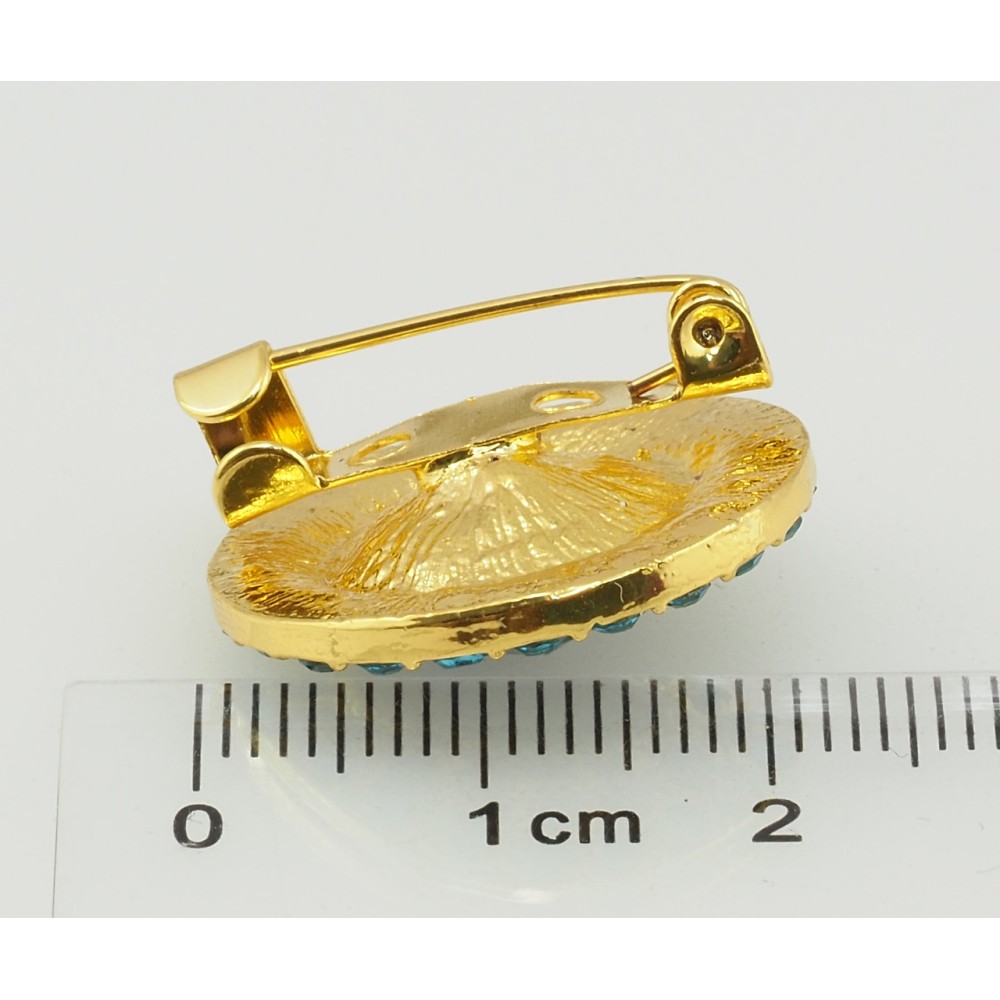 Брошка Коло з бірюзовими стразами